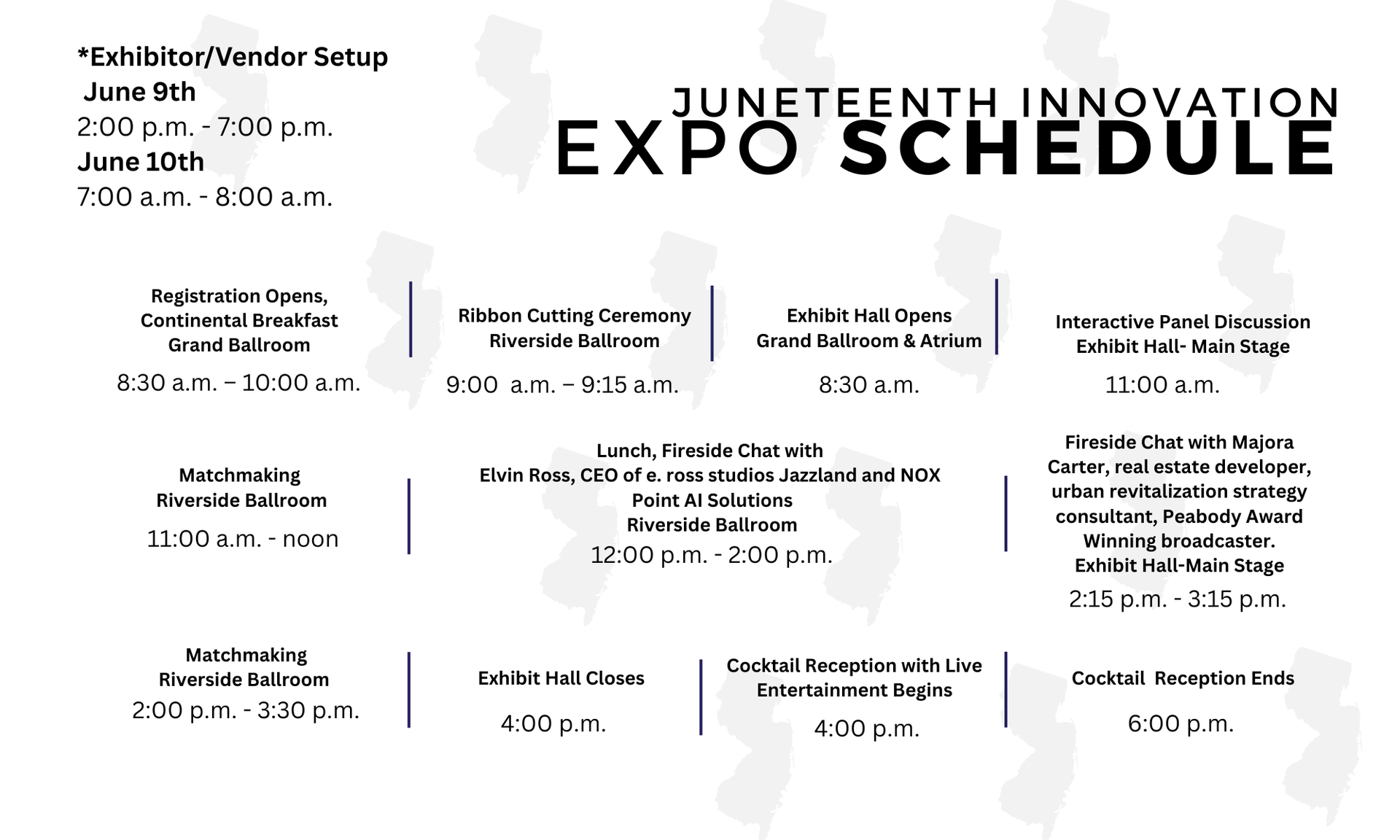 The AACCNJ proudly launched its inaugural Black Business Expo in 2023 at Montclair State University in Montclair, NJ. The 2024 event was re-branded as the “Juneteenth Black Business Expo” hosted at Fairleigh Dickinson University on the Metro Campus, followed by the 2025 Expo at The College of New Jersey, in Ewing, NJ.